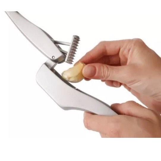 - Large bowl crushes several cloves at once without the need to peel them first.