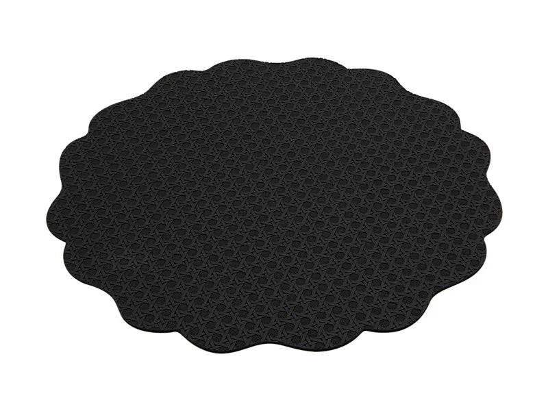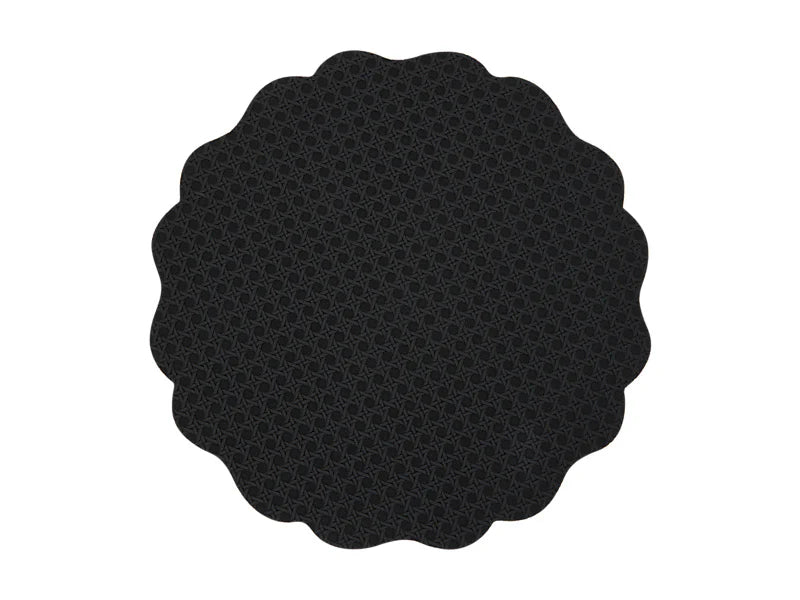 Bring Mediterranean elegance to your table with this Casa Domani Banda placemat. Crafted from durable polyurethane, it features an embossed basket weave design and distinctive scallop edging that captures the artistry of coastal dining traditions. The leather-look finish adds sophisticated warmth to any tablescape, while the versatile black tone complements both contemporary and classic interiors. Easy to maintain and designed to align with evolving homeware aesthetics, this 38cm placemat is an essential addition to refined entertaining.