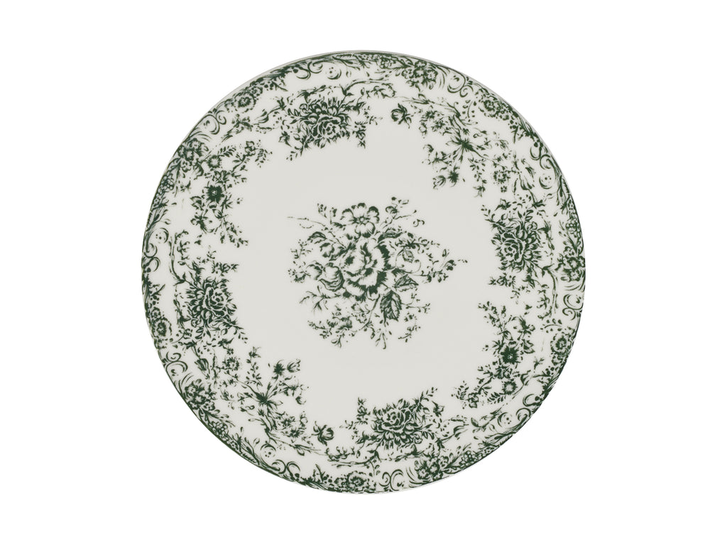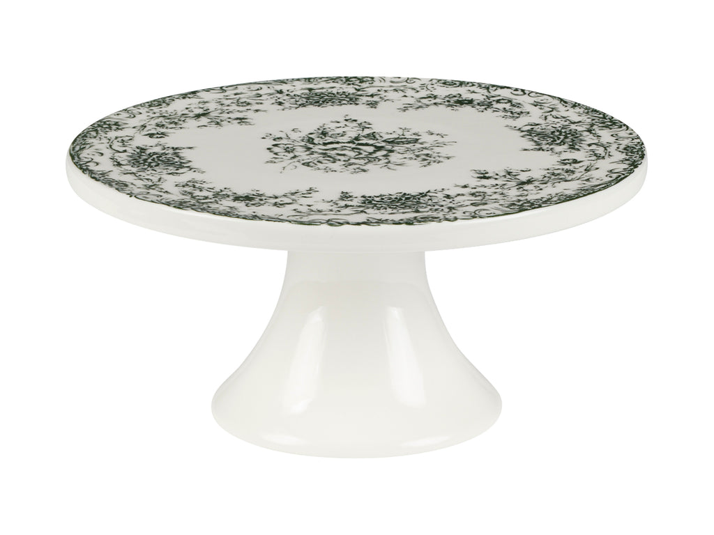A 20cm footed cake stand in an antique green finish, designed to serve and display cakes, pastries, and desserts with an elegant presentation. The raised base helps elevate your baked goods for a stylish display.