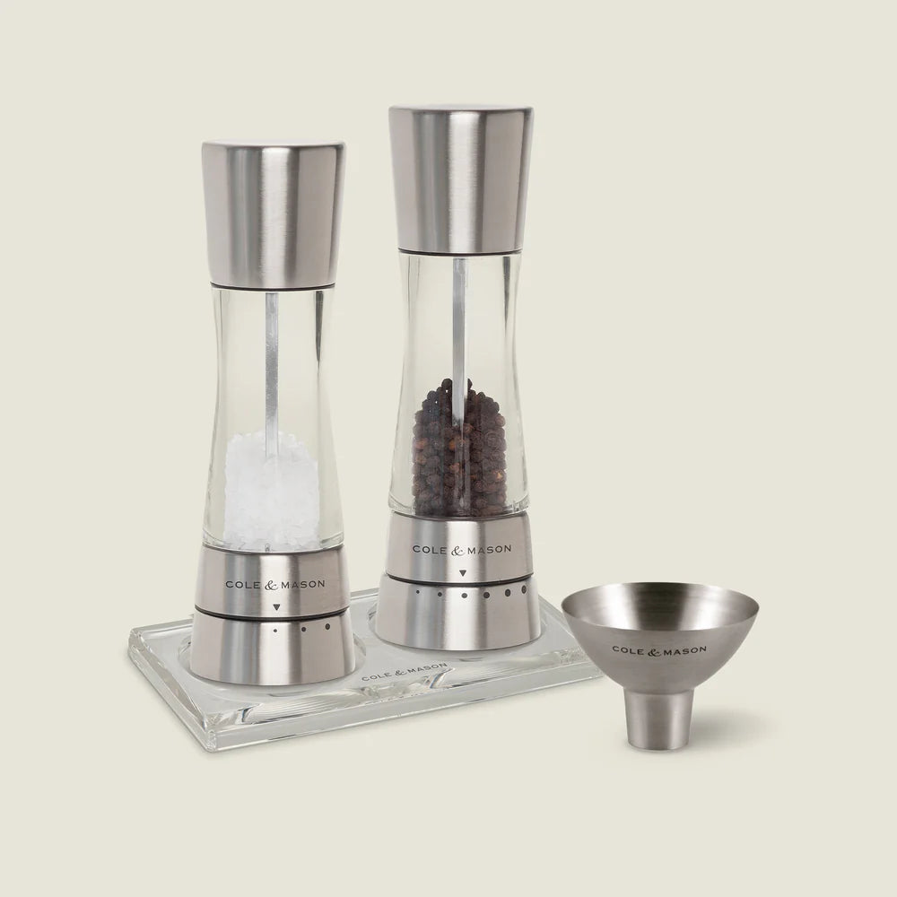 The Cole & Mason Stainless Steel Mill Funnel is expertly crafted from brushed stainless steel to provide a precise, spill-free filling experience for your salt, pepper, and spice mills. Its wider mouth simplifies and speeds up refilling, while the durable, dishwasher-safe construction ensures easy maintenance and long-lasting use. This funnel is an essential tool for maintaining the efficiency and cleanliness of your seasoning mills.
