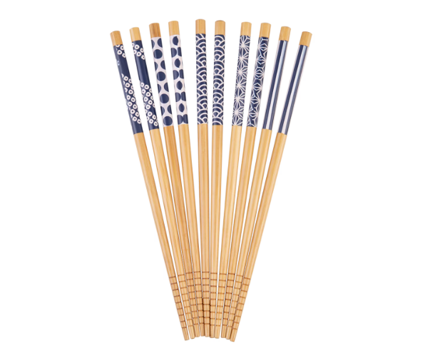 D.Line Bamboo Chopsticks with Blue & White Decal – Set of 5
