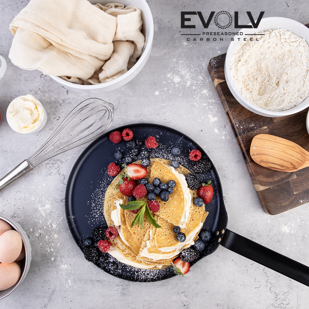 Evolv 28cm Pre-Seasoned Carbon Steel Crêpe & Roti Pan – Perfectly Thin & Golden Every Time