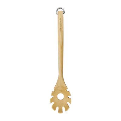 The KitchenAid Birch Wood Pasta Fork is engineered for precision when serving pasta and other delicate foods. Its sturdy birchwood construction combines durability with natural elegance, making it a reliable addition to any kitchen. The fork's tines are designed to grip and lift pasta effortlessly without breaking strands, while the comfortable handle ensures controlled handling during use. The warm wooden finish seamlessly integrates into modern, country, and rustic kitchen settings. With a hook end for practical storage and eco-friendly materials, this pasta fork delivers both performance and sustainability for the discerning home cook.