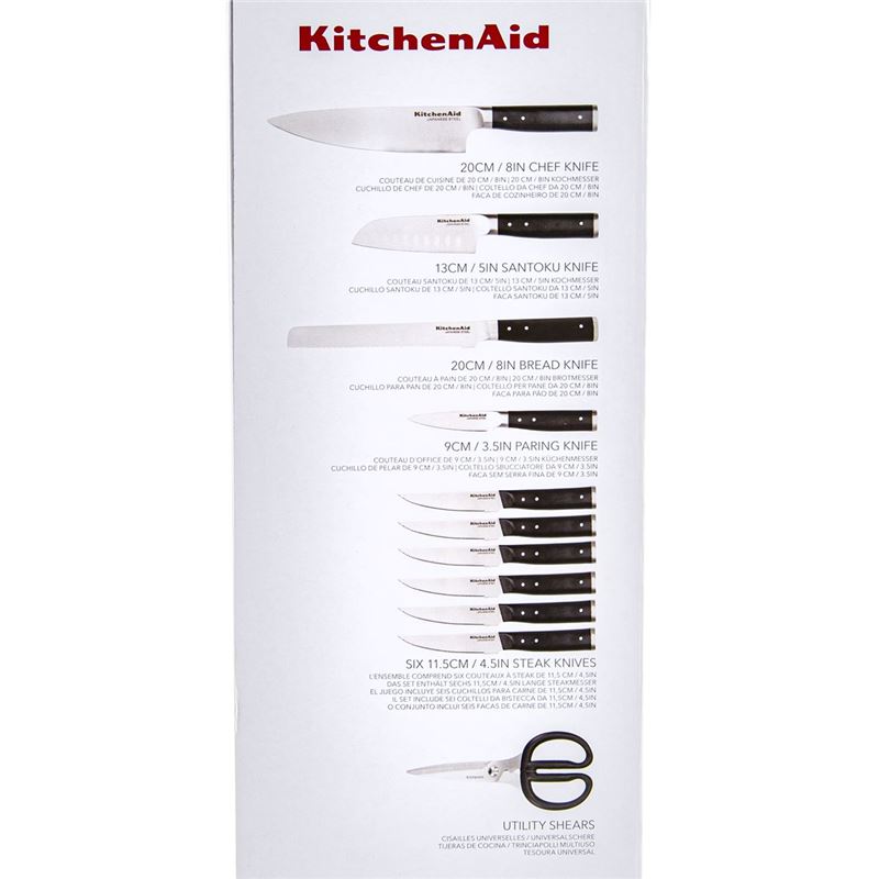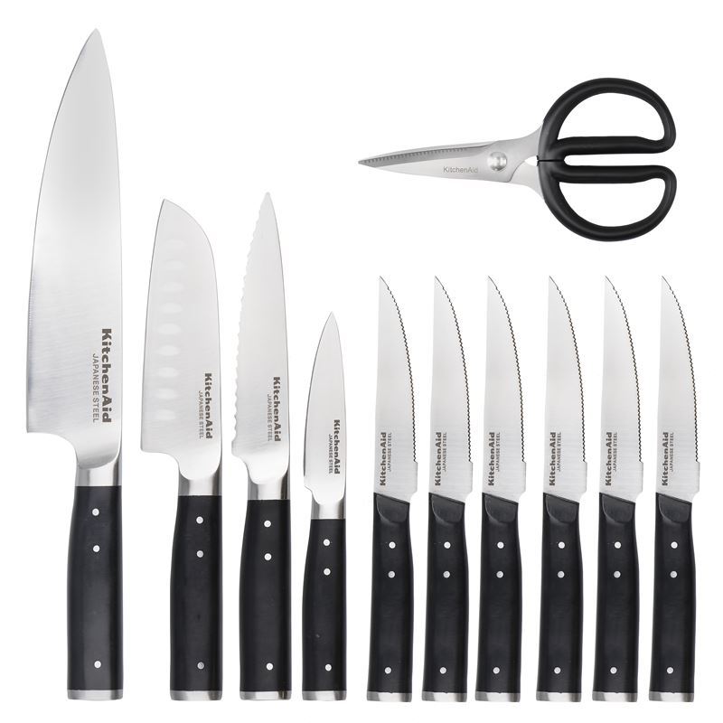 The KitchenAid Gourmet range include all the essential knives needed to perform everyday food prep tasks, such as slicing, cutting, chopping, trimming and more. Each forged blade is expertly crafted using high-carbon Japanese steel for a professional, quality cut every time. Constructed for perfect stability and control, the handles are well-balanced and feature a triple-riveted construction for a secure, comfortable grip.
