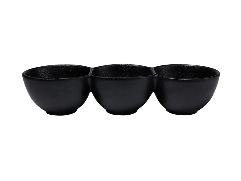 Elevate your table setting with the Caviar Collection's striking divided serving bowl—a sophisticated departure from conventional white dinnerware. Constructed from premium porcelain with meticulous hand-finishing, each piece showcases a textured reactive black glaze that exudes understated luxury and exceptional durability. Measuring 30x6.5cm, this expertly designed bowl integrates seamlessly with the full Caviar range, offering both aesthetic refinement and practical functionality. Perfect for curating impressive presentations at formal dinners or casual gatherings, it combines elegant design with intuitive usability for the discerning host.