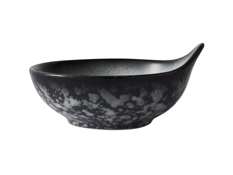 Elevate your table with the Caviar Granite Collection, a bold alternative to classic white that brings café-style chic and contemporary sophistication to any dining experience. Crafted from high-quality porcelain for durability and a sleek finish, each piece is hand-finished with a reactive glaze, featuring a textured surface and subtle granite effect for stylish contrast and understated drama. With dinnerware, servingware, teaware, and essential table accessories, Caviar Granite creates a seamlessly modern and refined table setting. Designed to serve and impress, this handled sauce bowl adds a touch of refinement to your table. Functional, elegant and easy to use.