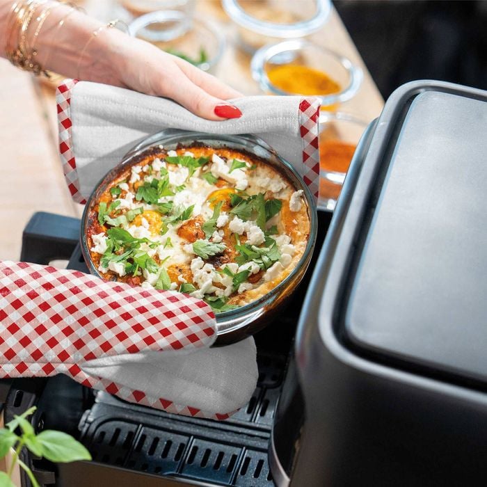Easy hold handles enable easy and safe transportation from the AIR FRYER or oven to table
