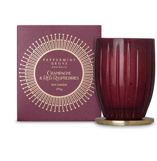 Peppermint Grove Australia Large Candle 370g – Champagne & Red Raspberries