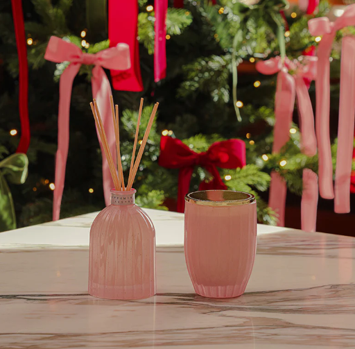 Presented in a blush pink vessel speckled with glittering gold, this limited-edition soy candle is both a treat for the senses and a statement piece for your décor.