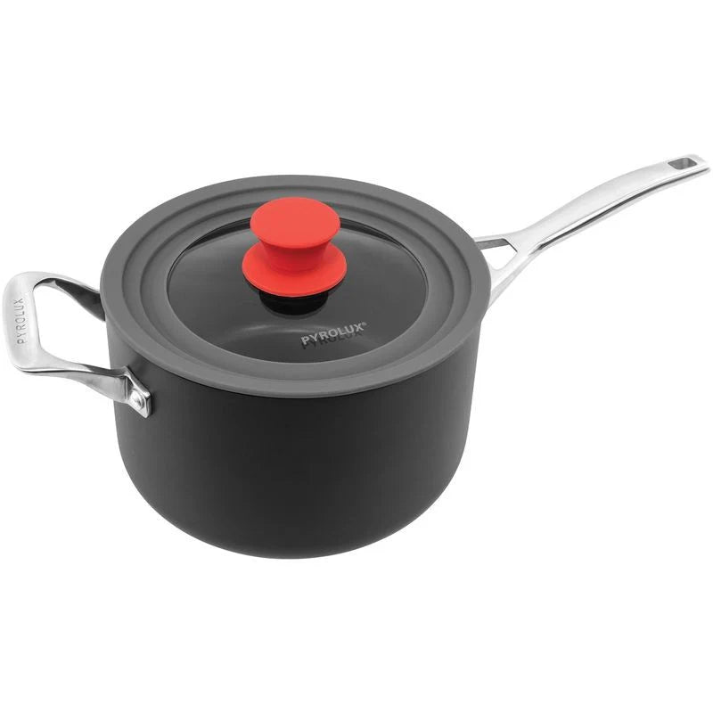 The Pyrolux Universal Glass Lid offers exceptional versatility, accommodating 16, 18, and 20cm cookware with its innovative design. The heat-resistant silicone knob remains cool during cooking, enhancing safety, while the protective silicone rim prevents damage to your cookware and shields the tempered glass from impacts. This practical solution eliminates the need for multiple lids, streamlining your kitchen organization.