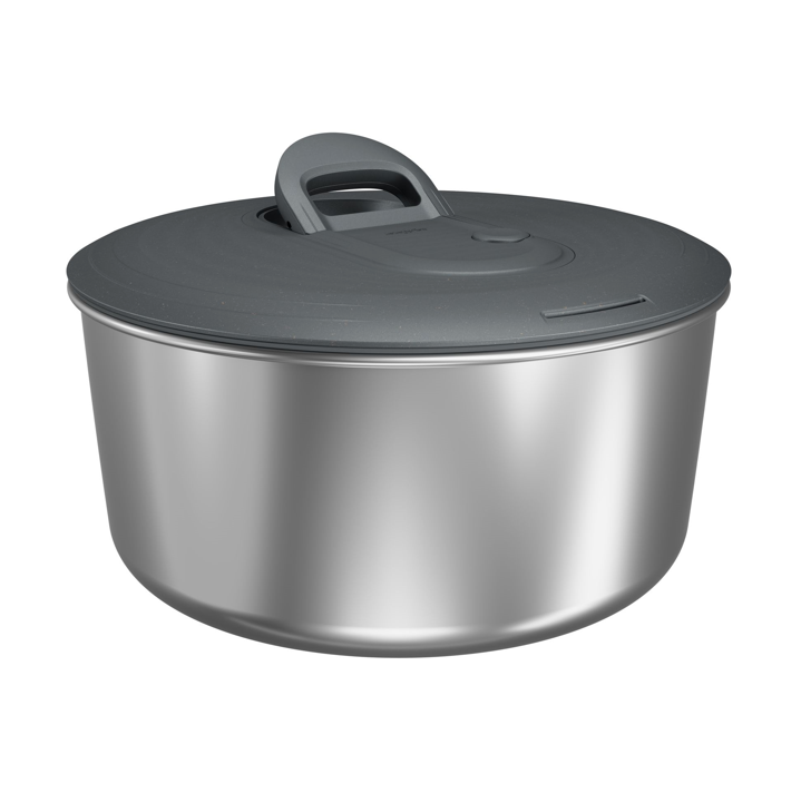 The Zyliss Easy Spin Salad Spinner in stainless steel offers efficient moisture removal for crisp, fresh salads in seconds. Its innovative design features a foldable handle for compact storage and a pour spout that drains water cleanly without spills. The stainless steel bowl also serves as an elegant serving dish, combining practicality with style for effortless salad preparation.