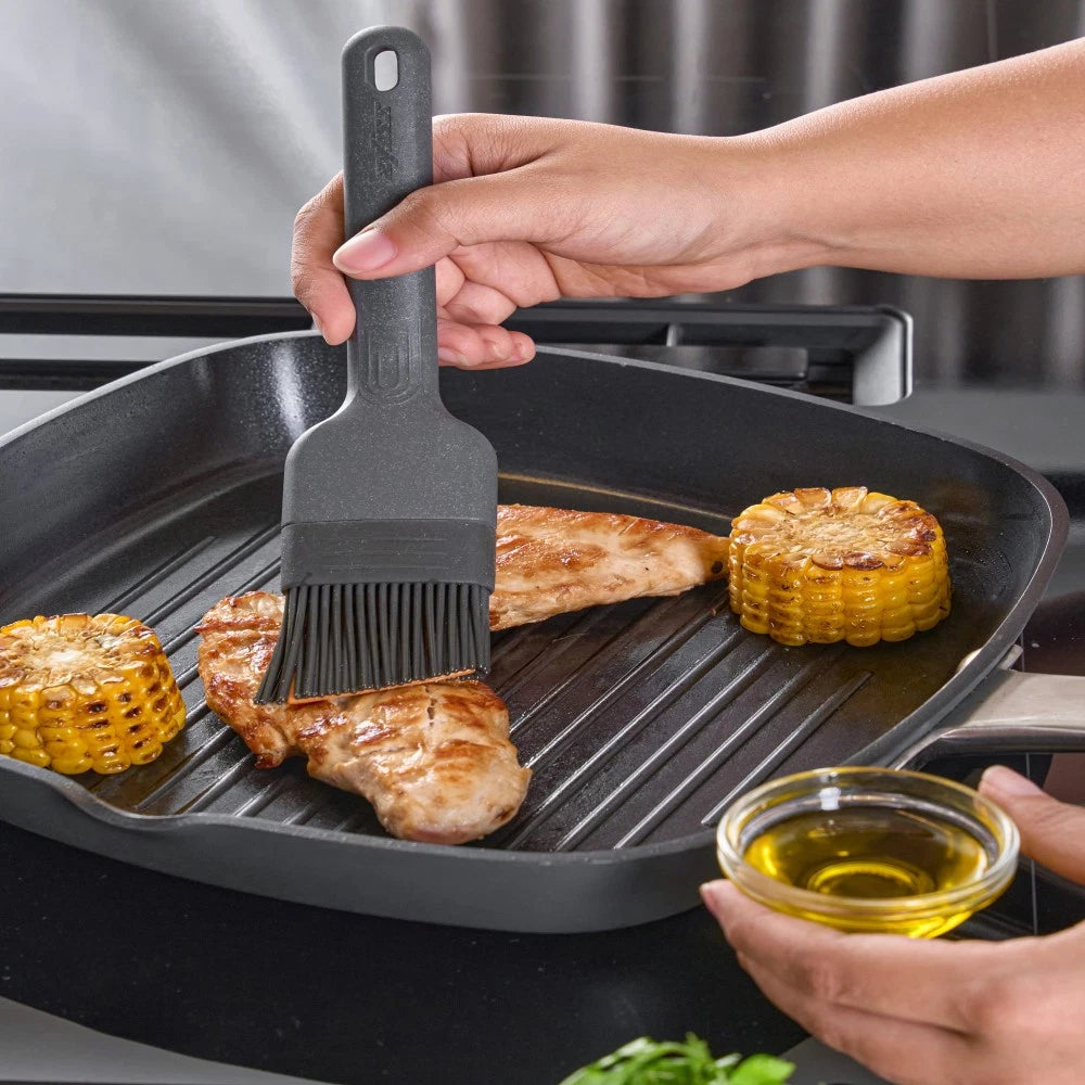 Durable, heat-resistant silicone bristles—safe to use on hot pans and grills. Ideal for applying grill marinades, or brushing pastries with egg wash, glazes, melted butter or oil