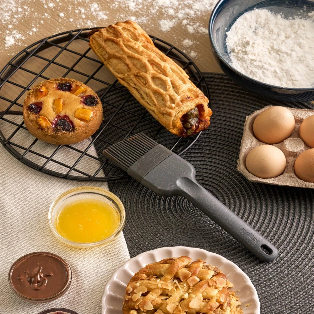 The Zyliss Silicone Basting Brush delivers professional-grade performance for both savoury and sweet applications. Its high-capacity silicone head reduces the number of dips needed, ensuring consistent, even coverage whether you're egg-washing pastries, basting roasts, or glazing baked goods. The ergonomic curved handle provides superior control and rests securely on bowl rims or countertops, minimising drips and mess. Built for durability and easy cleaning, this versatile kitchen essential streamlines your cooking and baking workflow with reliable precision.